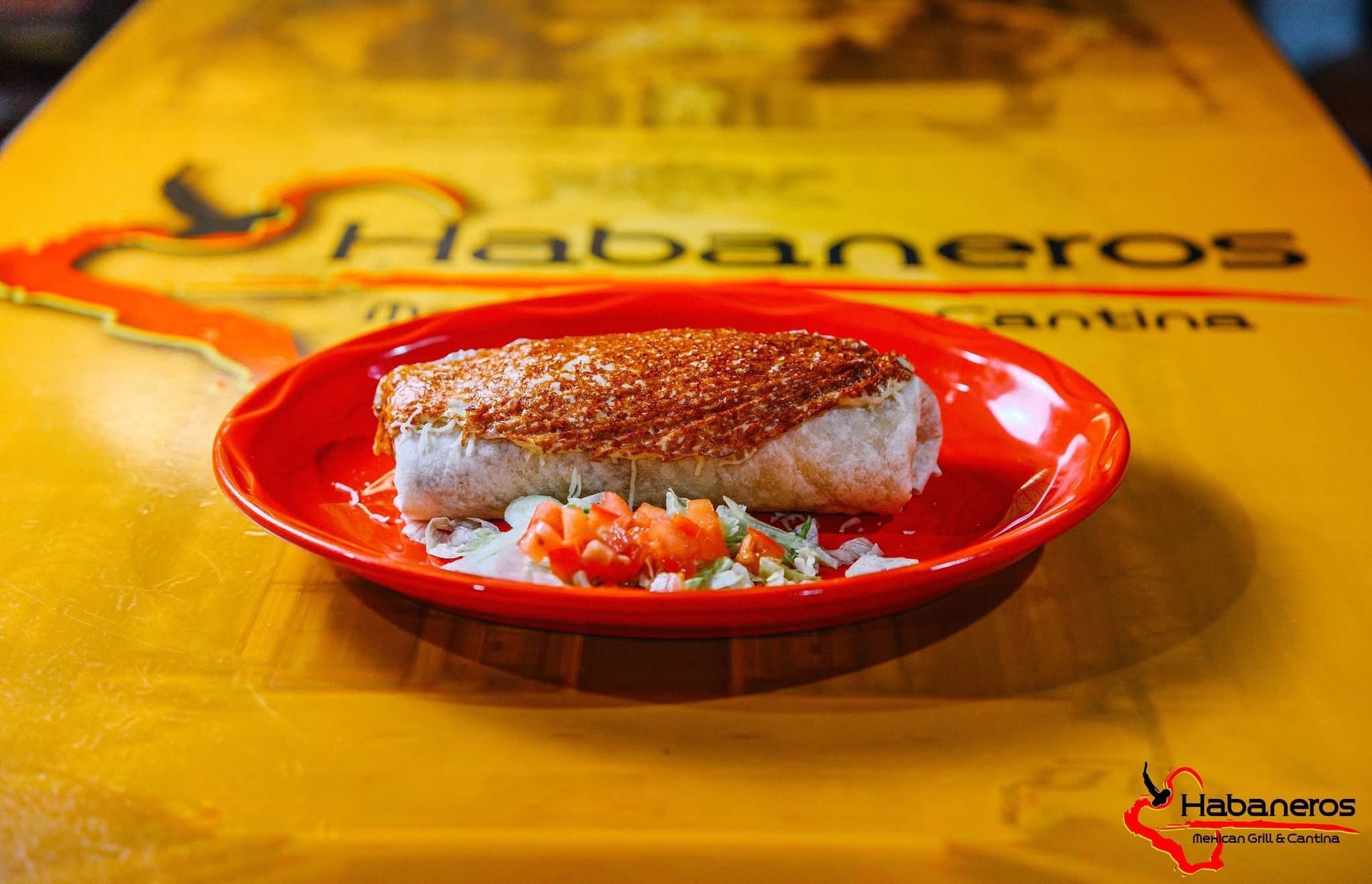 Wrapped in a 12” flour tortilla filled with your choice of ground beef, or shredded chicken, and rice, beans, lettuce, avocado, sour cream, and topped with grill cheese